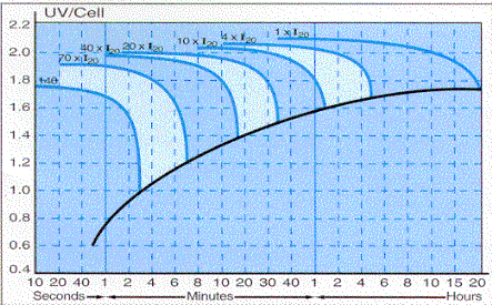 4.1 Final Discharge Voltage The final discharge voltage is specified as the value below which the voltage must not fall when discharge occurs at the respective current. If the battery is discharged further, (i.e. the battery voltage is lower than the final discharge voltage), the area of deep discharge is entered. The final discharge voltage is normally given in V/cell and depends on the discharge current.