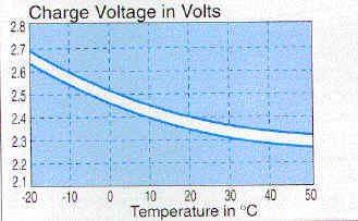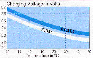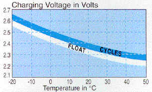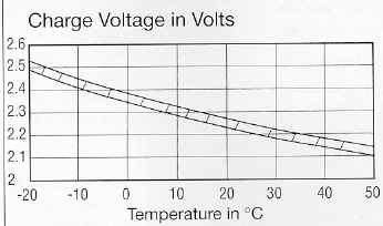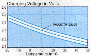 5.3 Temperature Compensation of Charging Voltage Temperature compensation of the charge voltage is necessary when the temperature fluctuates, to avoid increased gassing at higher temperatures. We recommend the following temperature compensation