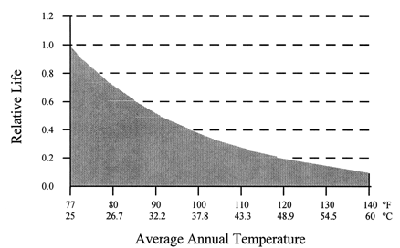 The battery is the least reliable component of a UPS. Whereas most components give relatively little trouble over the lifetime of the UPS, the batteries need to be replaced every two to five years. The battery is also one of the most expensive components of the UPS and typically accounts for 25% or more of the initial purchase cost. Consequently, for a UPS with a service life of 10 years, and a battery life of 2 years, the total cost of battery replacement over the UPSs lifetime will be equal to, or exceed, the original purchase cost. So what factors affect battery life? Can the battery life be extended? The two main factors which determine battery life are temperature and number of discharge cycles.