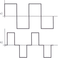 en un ondulador de onda cuadrada, mediante conmutadores electrónicos,