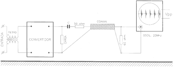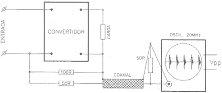 es ideal) interpuesta entre el convertidor y el osciloscopio, los conductores