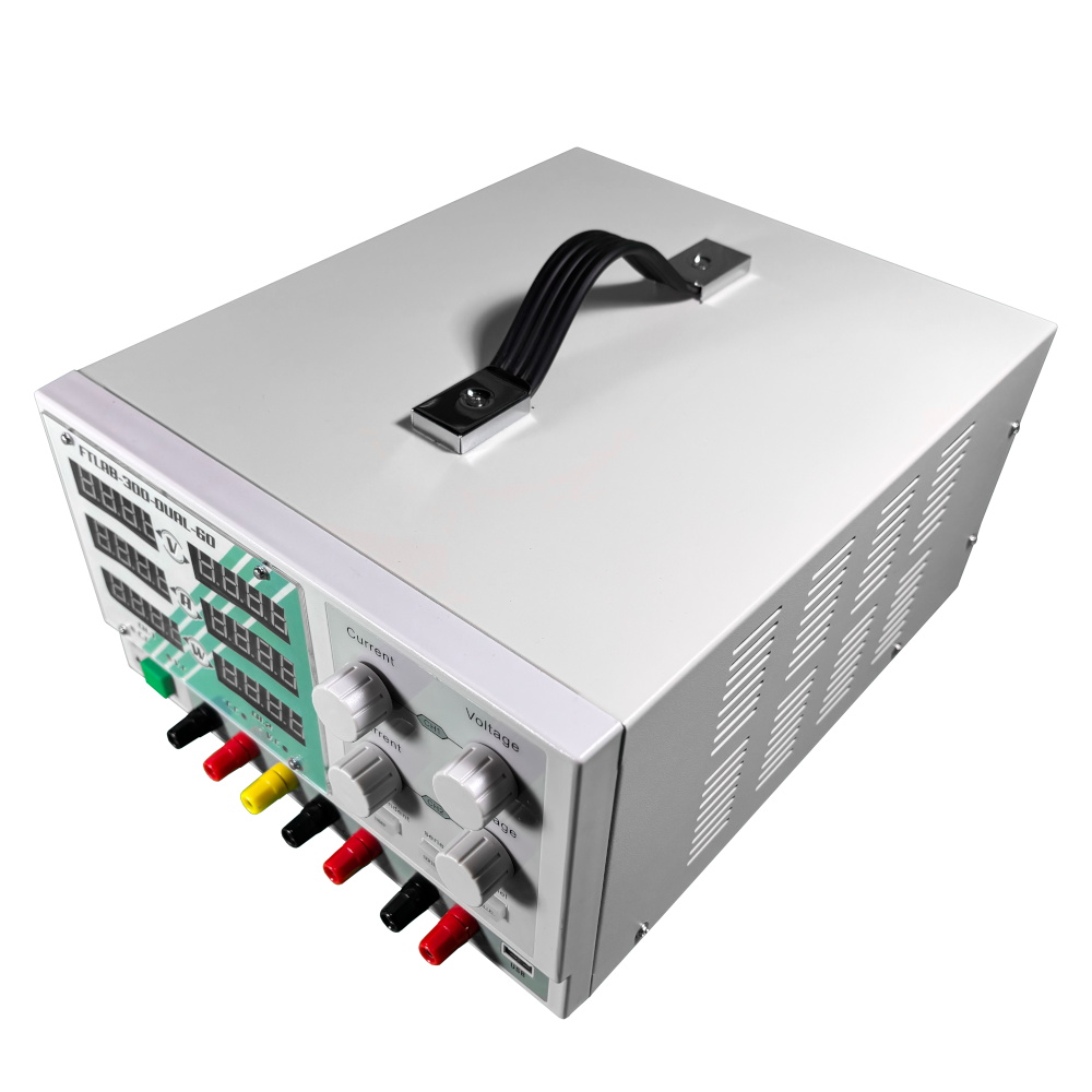 Fuente de alimentación con doble canal ajustable (0–60 V / 0–5 A), salida USB de 5 V/2 A, modos CC/CV, pantalla LED de alta precisión y múltiples protecciones de seguridad. Ideal para laboratorios, electrónica, pruebas y reparación. FTLAB-300-DUAL-60 es una fuente de alimentación de laboratorio profesional con dos canales totalmente ajustables, capaces de entregar hasta 60 V y 5 A por canal, con posibilidad de operar en modo independiente, paralelo o serie para adaptarse a diversas necesidades técnicas. Incorpora una salida USB adicional de 5 V / 2 A, perfecta para alimentar dispositivos auxiliares.